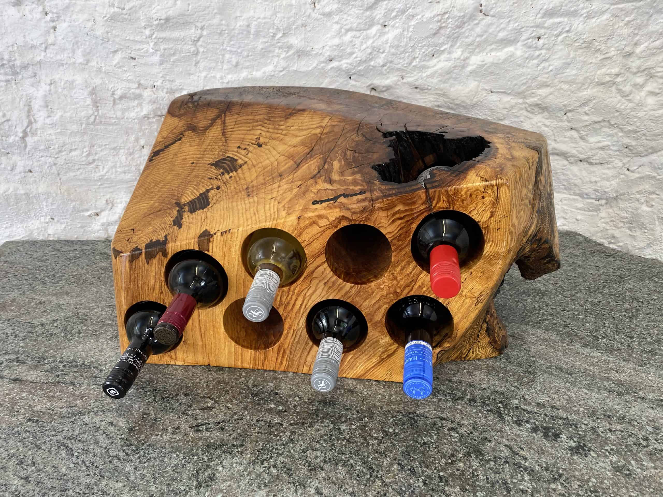Elevate your interior with our handcrafted spalted ash wine rack, a striking blend of artistry and functionality. Designed to hold up to 8 bottles of your finest wines, this one-of-a-kind piece transforms wine storage into a statement of luxury. Each rack is individually handcrafted, ensuring no two designs are ever alike, thanks to the distinctive spalting patterns that flow through the wood. The result is an exquisite feature piece that combines natural beauty with purposeful design.