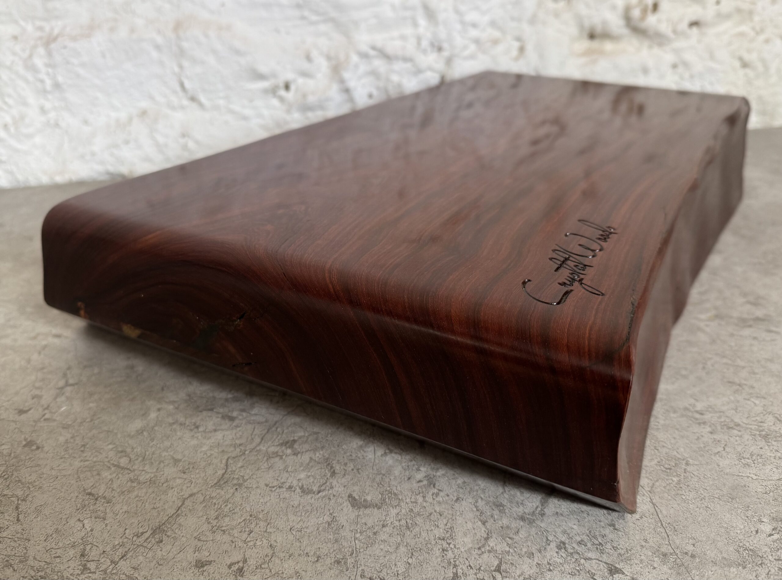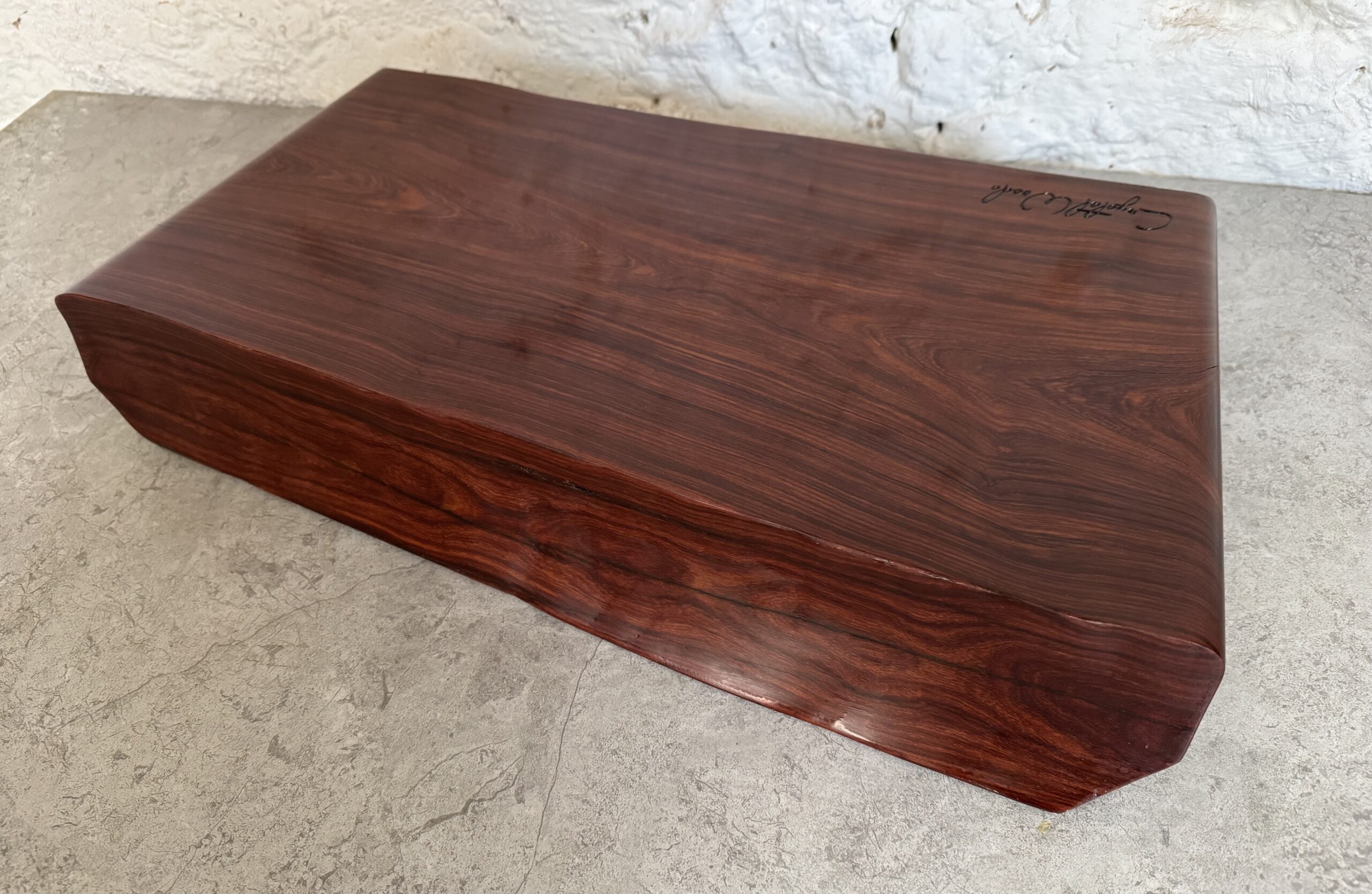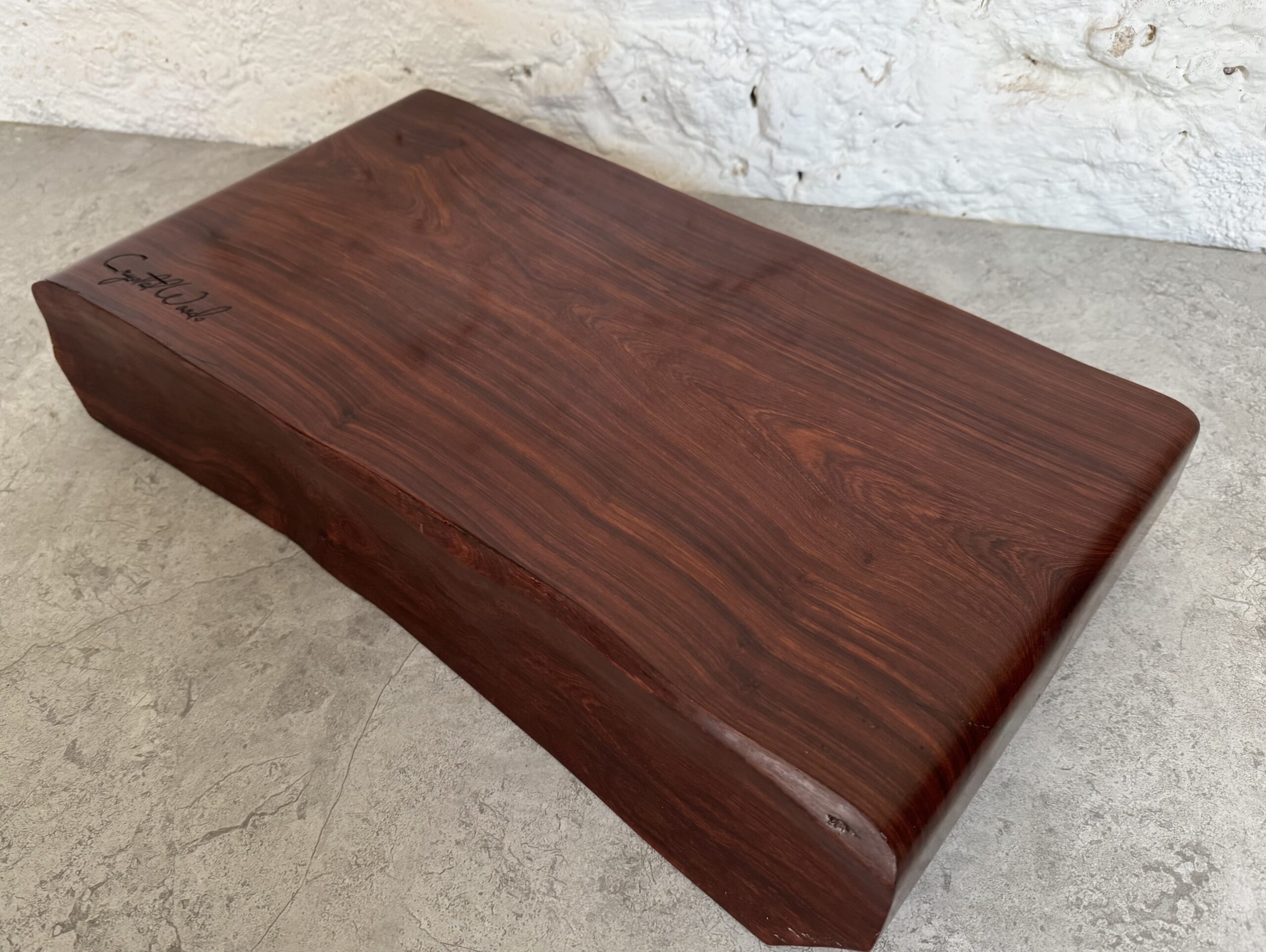 Introducing one of the most powerful, sculptural and luxurious boards ever created inside the Crystal Woods workshop, a true Rose Wood Butchers Block, hand-crafted from a single, immense slab of African Pau Rosa. This extraordinary piece is not only a chopping board, it is a centrepiece of craftsmanship, beauty and permanence. With its deep reddish grain, natural flowing curves and mirror-like finish, it stands as one of the most impressive premium boards available in the UK today.