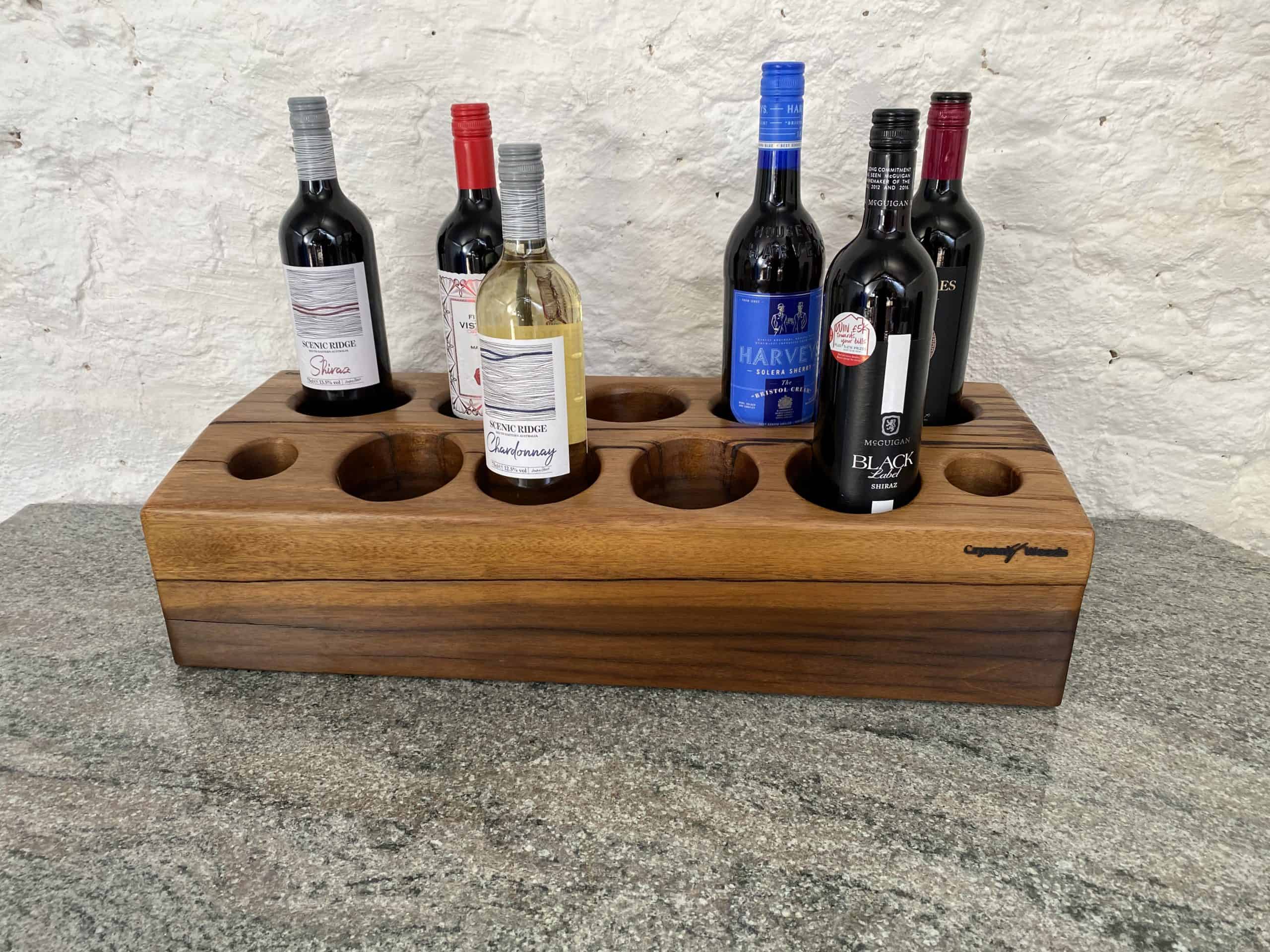 This Bespoke Cocktail Bar is thoughtfully designed to balance both style and practicality. Featuring nine bottle-sized holes, it provides secure storage for wine, champagne, or spirits, while two smaller holes offer convenient space for cocktail stirrers, swizzle sticks, or bar tools. Compact yet substantial, it’s the perfect addition to a kitchen counter, home bar, or dining space, offering a stylish and organised way to showcase your collection.
