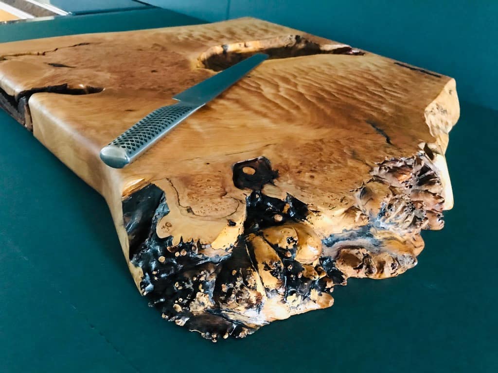 Exquisite Ripple-Back & Bird’s-Eye Maple Chopping Board with Live Edge Detail