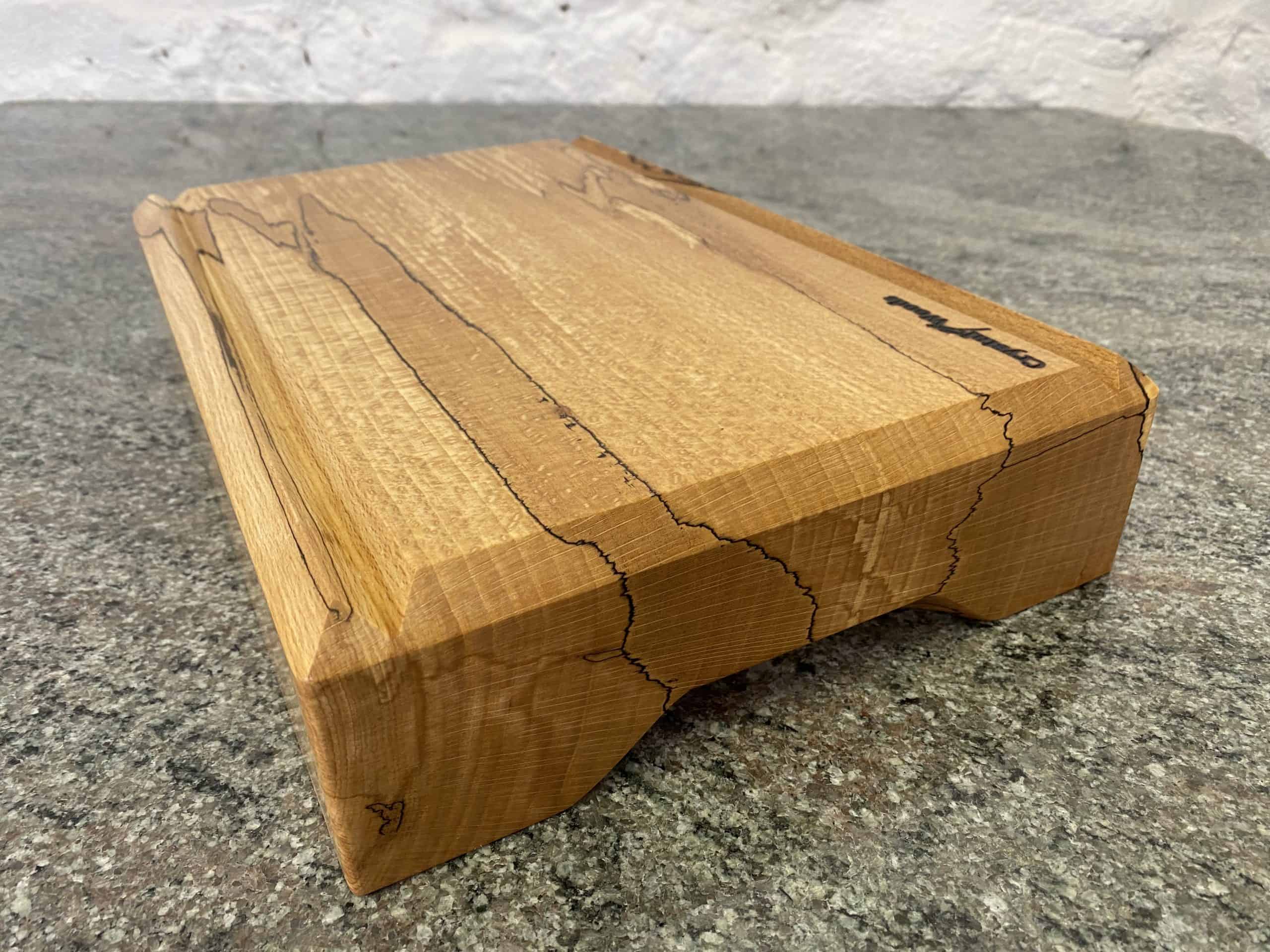 Carved from a solid block of carefully selected English Spalted Beech, each board showcases dramatic vein-like lines, organic figuring, and distinctive colour contrasts. No two boards are ever the same, making this a one-of-a-kind chopping board and a genuine work of functional art.