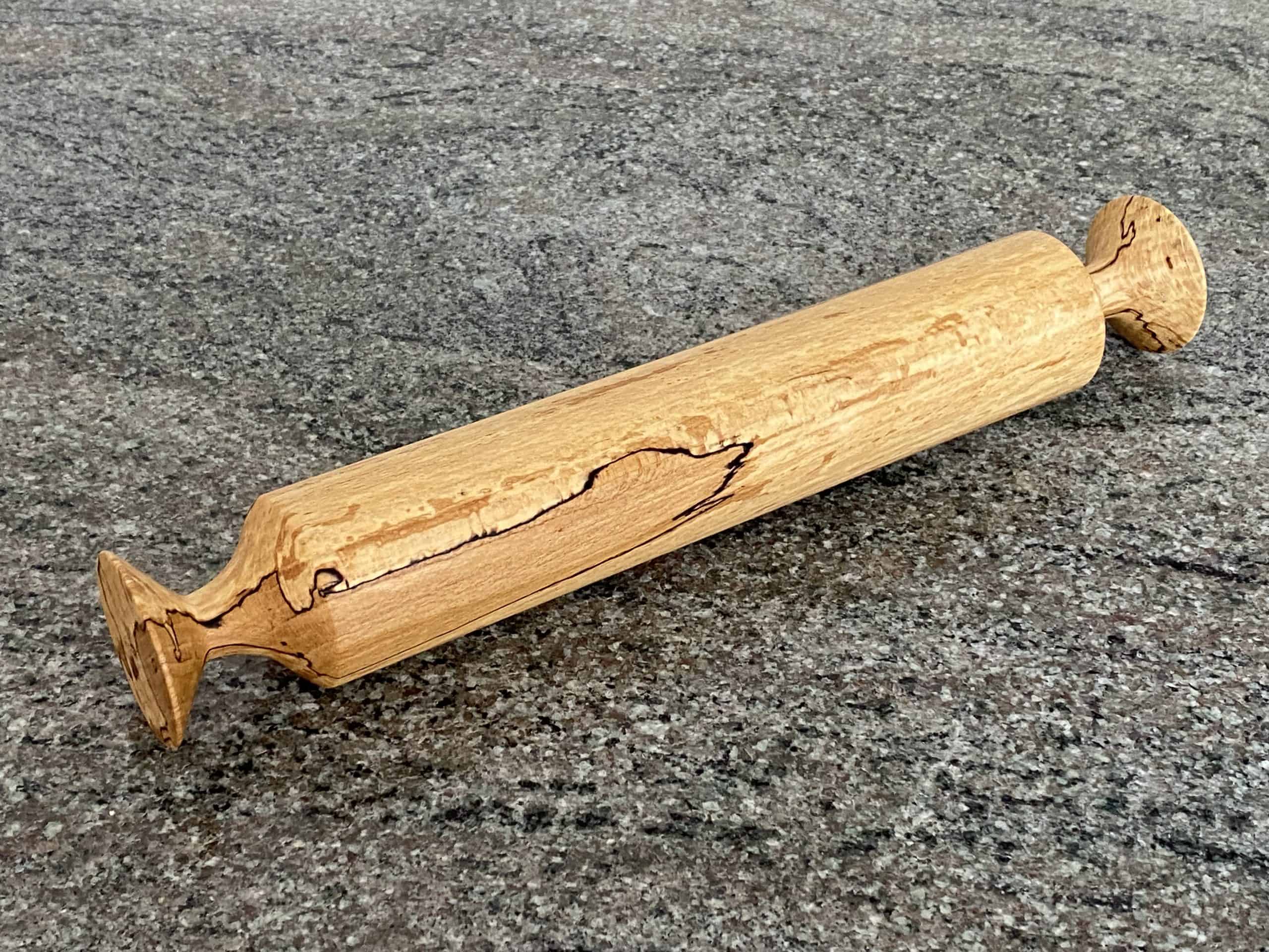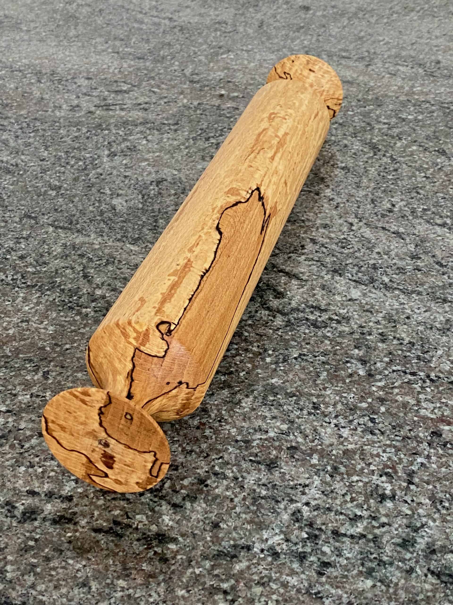 Small size traditional rolling pin made from Spalted Beech finished and sealed in food safe oil