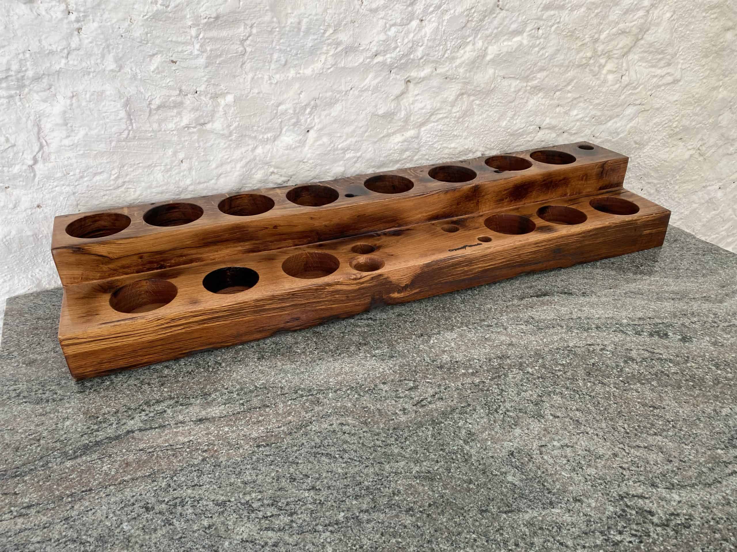 There is a certain magic in wood that has lived a life before becoming part of yours. The curves, the grain, the natural edge, the unexpected beauty in every knot and line. Our tree trunk wine racks capture that character – each one carefully shaped from solid timber in our Dartmoor workshop, then finished by hand to create a sculptural place to store and display your favourite bottles.