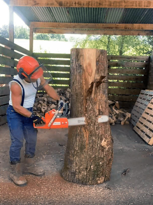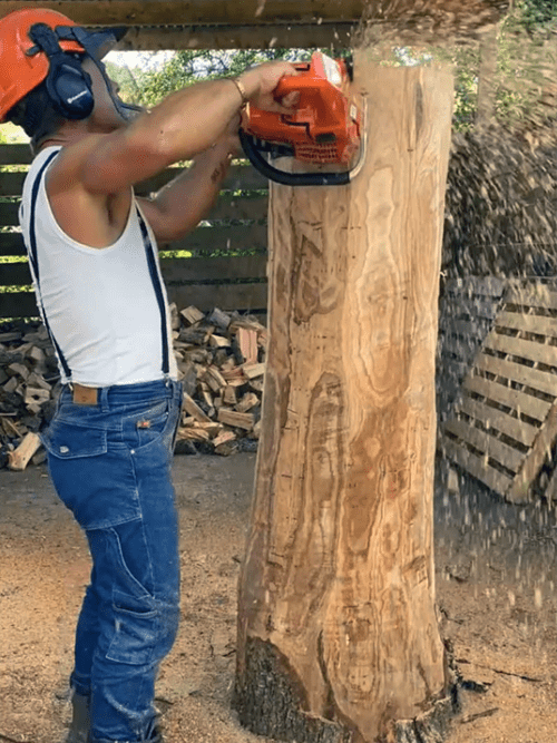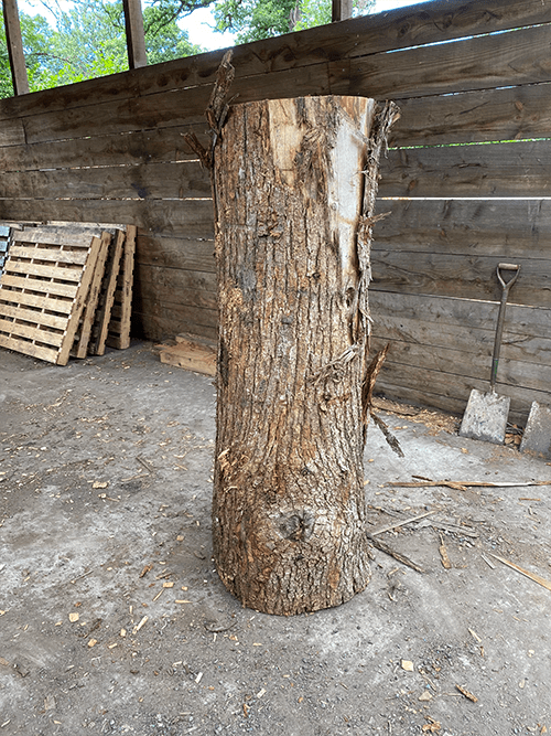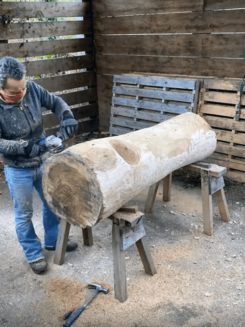 That trunk will need to be shaped, levelled, cleaned and marked up for its transformation into a wine rack.