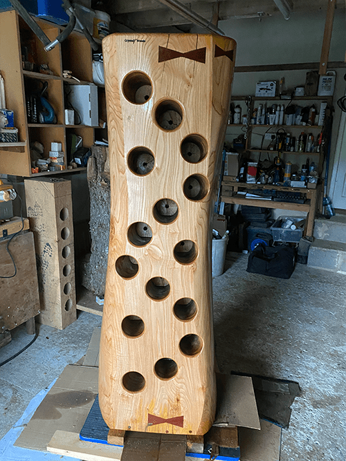After a long search we found Crystal Woods website and commissioned Llewie to create a bespoke 15 bottle wine rack from a chestnut log that he selected. It was a pleasure to do business with Llewie.