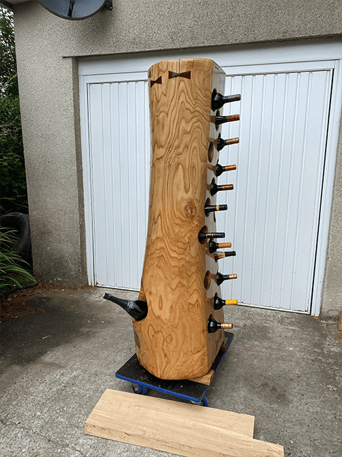 The creation of a finely crafted whole trunk wine rack is a laborious process that can take weeks of work.
