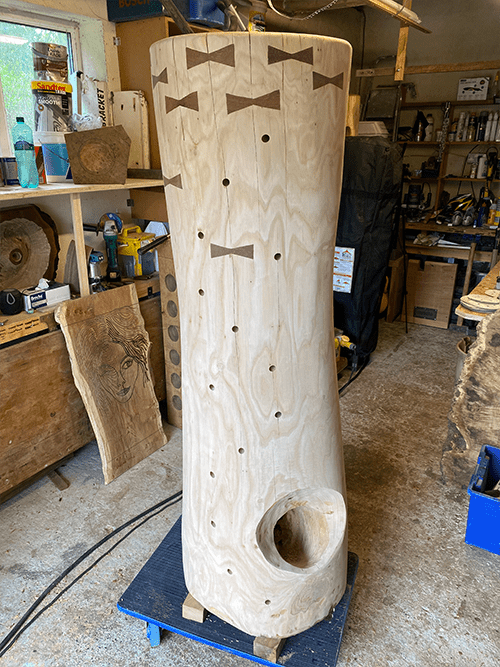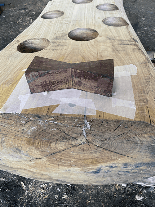 All wood is imperfect so any areas of rot need to be identified, cleaned and stabilised. Any cracks in the stump that may get bigger as the trunk dries need to be made secure with hardwood ties to ensure the wood stays strong for the duration of its long life. The ties add both strength and character to the final outcome but also take a lot of time to do well.